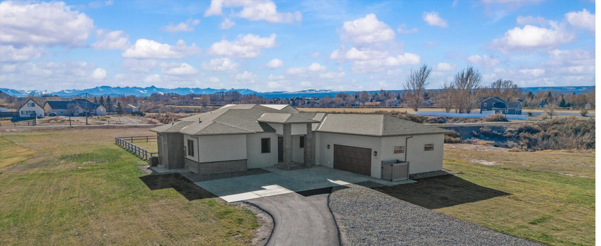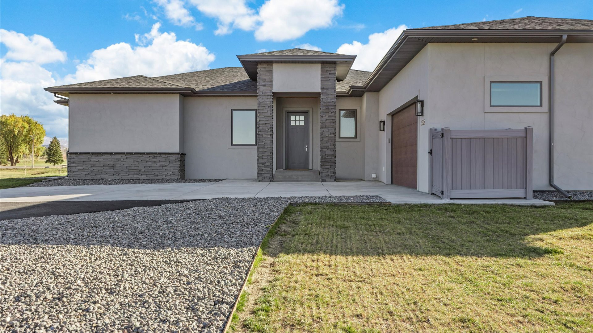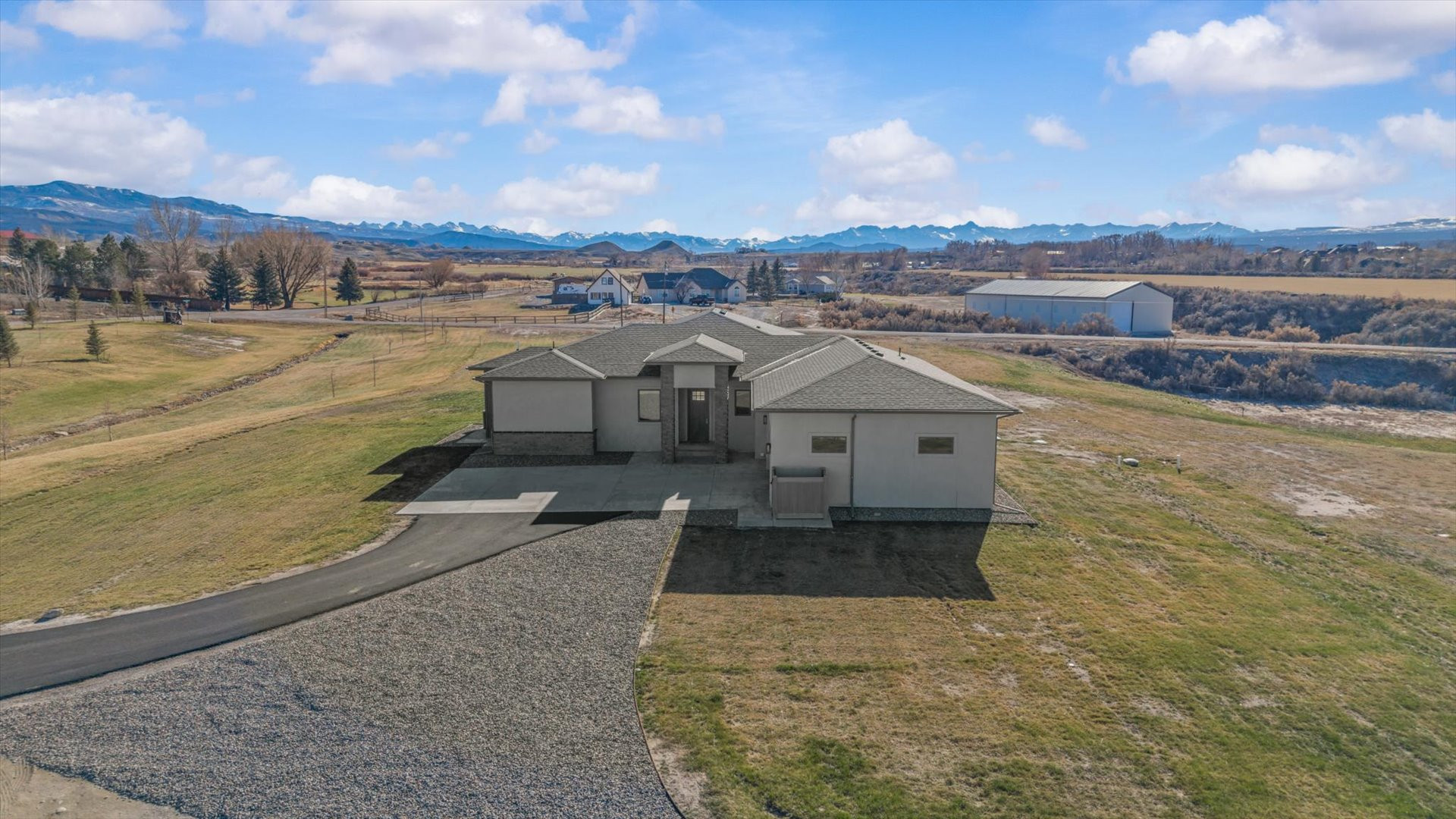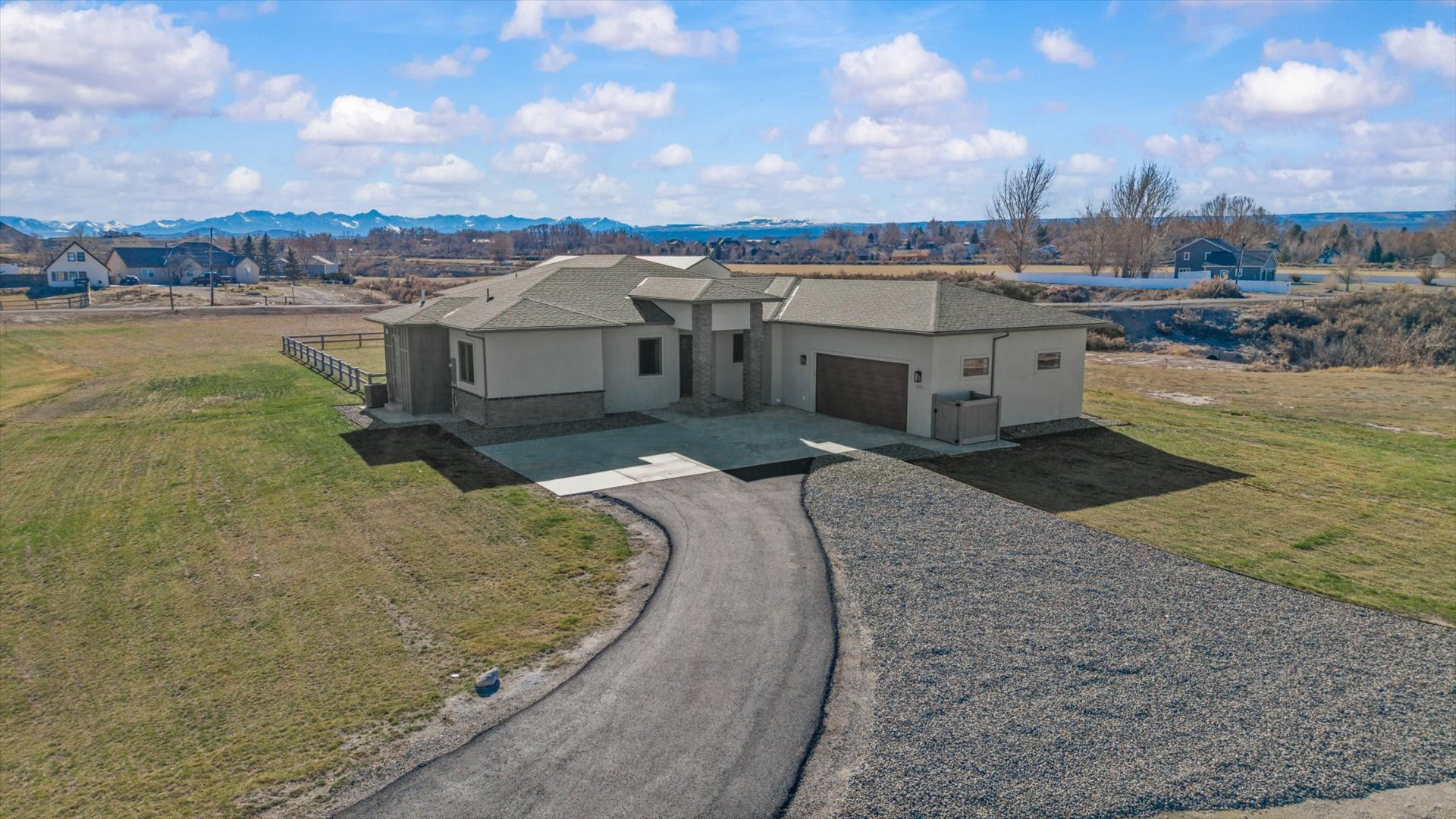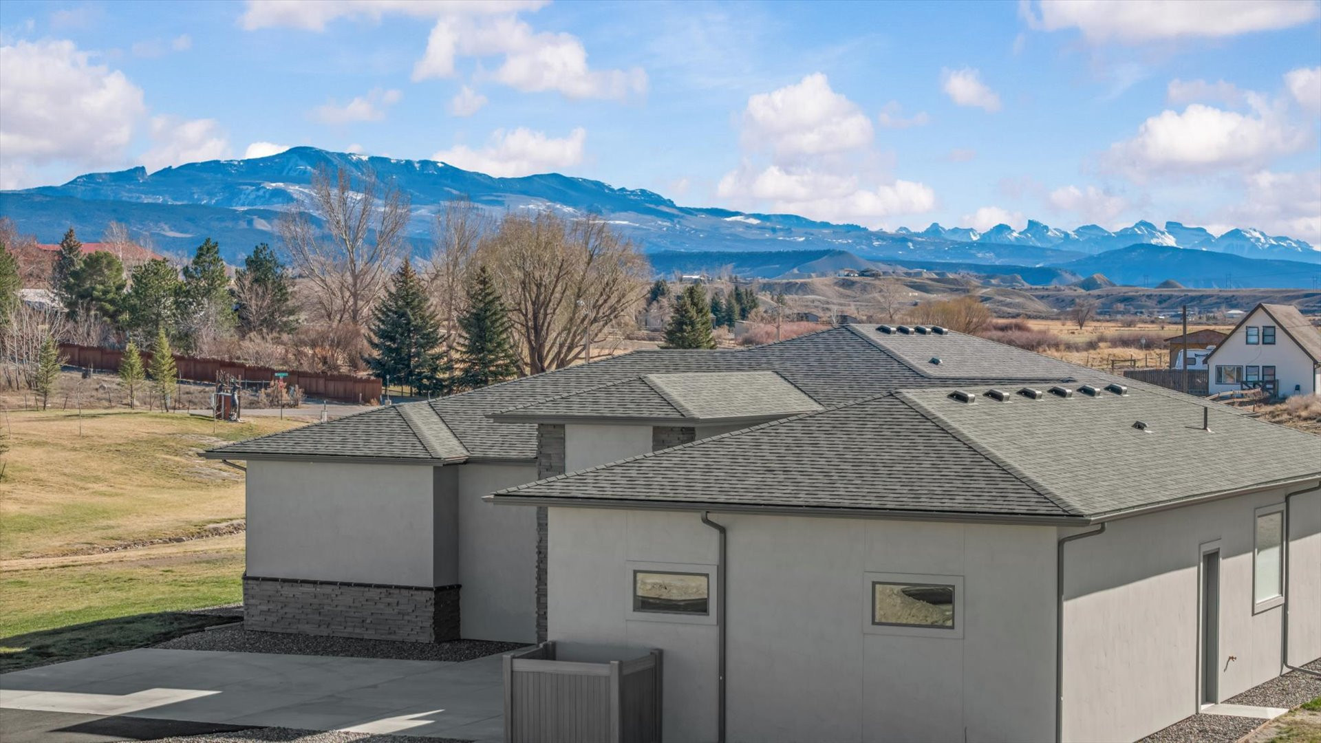 Majestic Mountain Views on 2+ Irrigated Acres! Show-Stopping, Search-Ending, New Construction Masterpiece. Unmatched Workmanship and Finishes inside the walls and out! An idyllic and tucked-away location in south Montrose, Colorado on rolling hills, surrounded by seasonal creeks and greenery. A completely customized thoughtfully upgraded home, one step inside transports you to a wonderland of natural light, meticulous detail, and conscious construction. Eight oversized Enerlux gallery windows unite the kitchen/living/dining spaces across the spanning south facing wall wrap providing 270 degree views capturing the absolutely epic San Juan and Cimarron Mountains, sunrises with the back drop of a magnificent oak tree and fiery red sunsets. The gourmet kitchen of your dreams awaits, providing ergonomic utility combined with beauty and indulgence. Hand-crafted, Amish Wood crisp white and sky blue cabinetry invites the sky and sunshine to expand throughout the kitchen. Designed with mostly drawers for easy access, a double thick, stunning quartz top with an on-trend glass subway tile backsplash that shimmers. Oversized spherical pendants enchant for entertaining at the expansive island that deserves its own sentence. Every detail planned to blend perfectly together and create a relaxing space for your loved ones (and you!) to take a deep breath and relax in your very own, everyday vacation! The smartly designed floor plan provides the perfect amount of space while optimizing views ensuring your living experience is something out of a dream. The en-suite is oversized and has a picturesque spot for meditation or a reading nook under the embracing sparkle of the translucent seashell chandelier. The elevating primary bath pops with a massive, west-facing window, the natural light bringing in a sense of pristine cleanliness. The spacious vanities, serene ergonomic soaking tub, and huge, tiled walk-in shower are complimented with a completely custom matching walk-in closet with waist height drawers and plenty of shelving. A well-planned retreat! Two oversized guest bedrooms each with walk-in closets. A small bonus room could be a home office, nursery or gym. The laundry/mud-room is refined with an elevated tiled clothes pre-rinse/dog wash station for ease when returning home from a fun adventure. Extra closets are cleverly tucked in throughout the home to provide an organized, clean space and reduce visible clutter. The garage accommodates larger vehicles, toys, and tinkering, with an 18’ door, extra depth and width, with heightened ceilings and windows. The oversized, extended covered and lit back patio is the perfect place to survey the landscape and experience what true peace and tranquility really mean. A home like this is hard enough to find on its own, much less when it’s on 2.3+ irrigated acres, tucked between two creeks and open space to make it feel even more expansive without the added maintenance. Enjoy countless upgrades, including a Warmboard, 4-zone radiant heat system with a 2-zone A/C system, Hellenbrand Whole House Promate Water conditioning system, Hunter Douglas mechanized blinds, over-excavated foundation with a full French drain setup and conditioned crawlspace, upgraded drywall and insulation, 10’ ceilings and so many more. The location is an absolute home run! The Falls at Valley Ranch is perfectly placed just minutes from all the best of what Montrose has to offer; a budding restaurant and brewery scene, unmatched healthcare, trails, open space and parks, boutique and traditional shopping, all without the headache and drama of what you get with urban living. And all of this with a jaw-dropping, dazzling home dripping in luxury! You’ve just found your refuge! Experience 3802 Aspen Grove for Yourself Today!