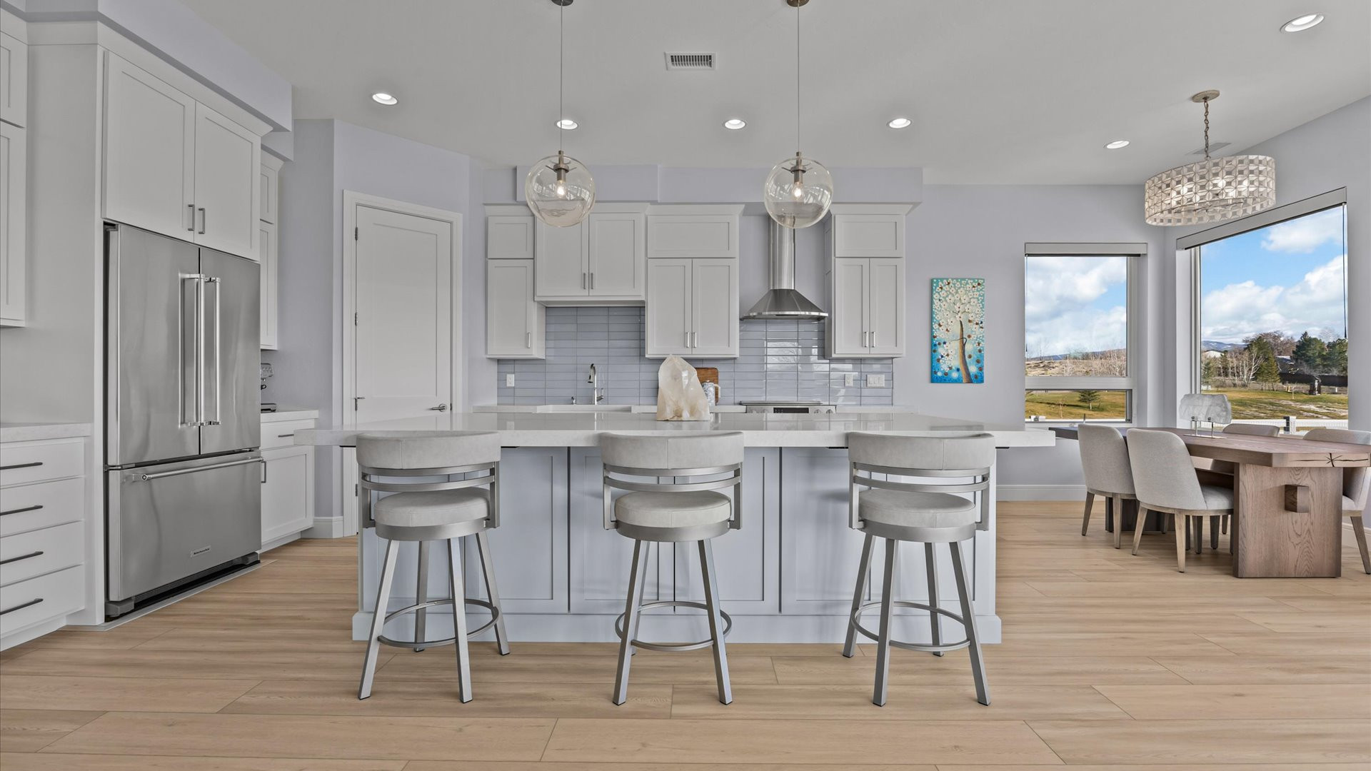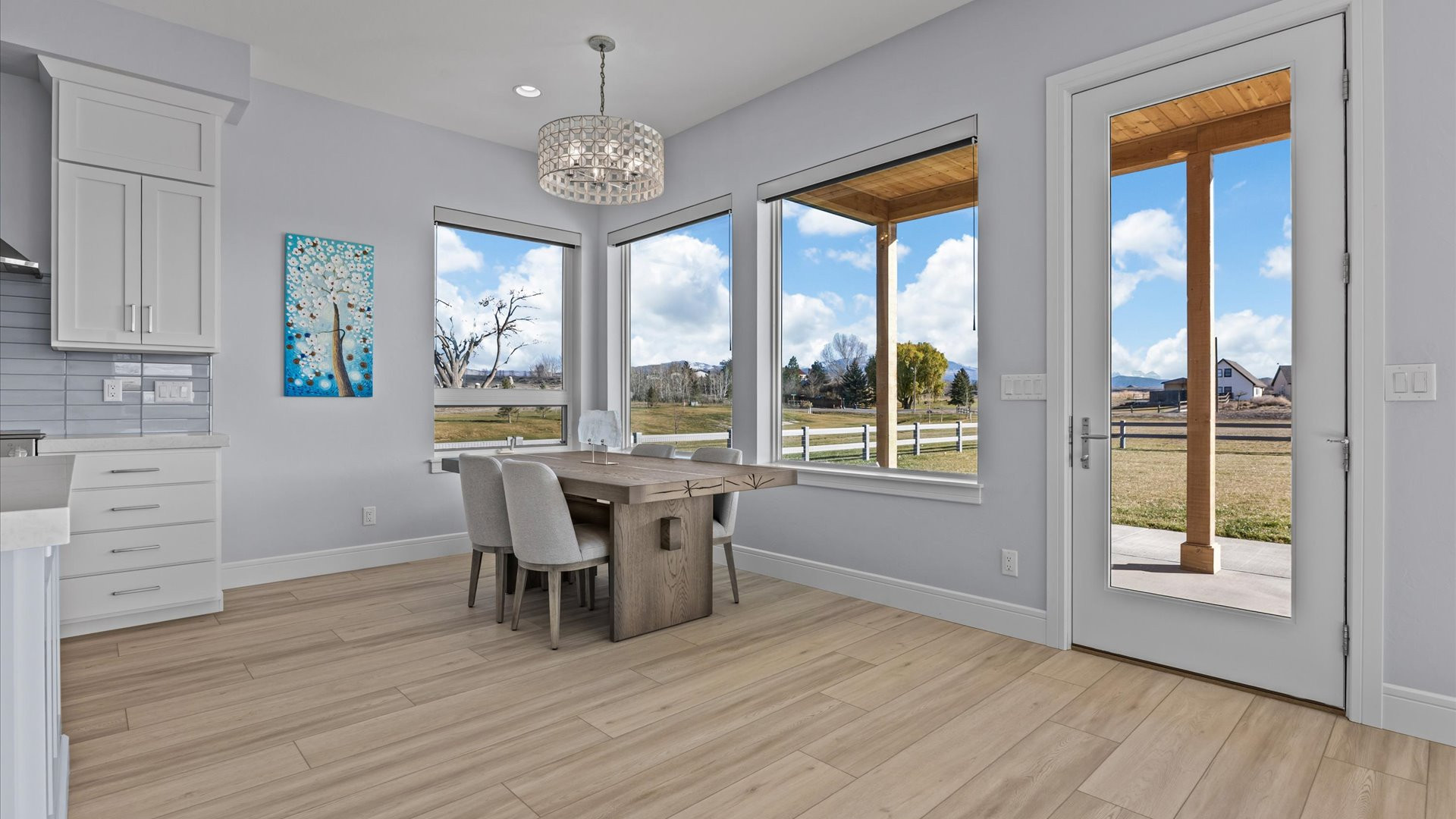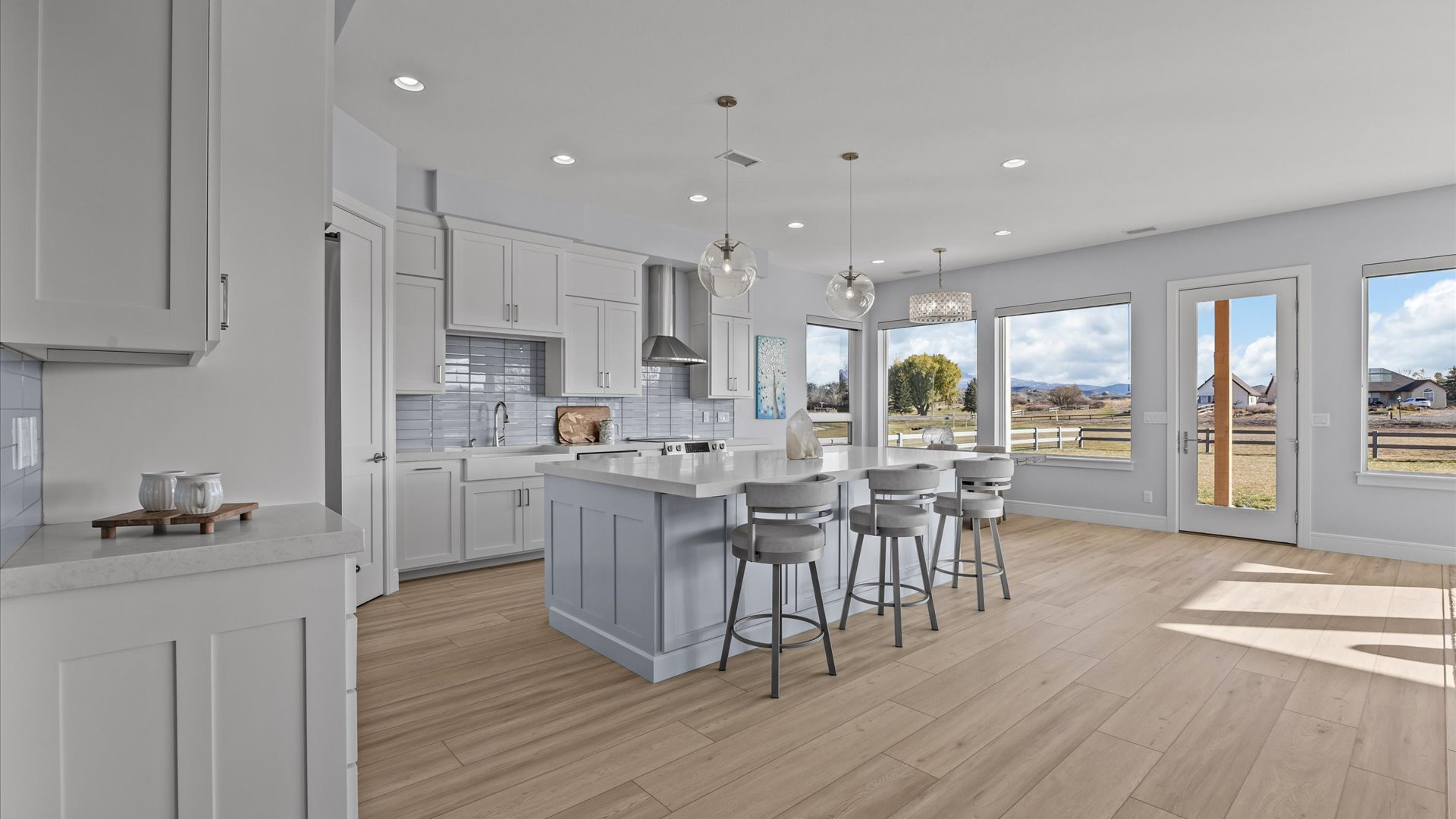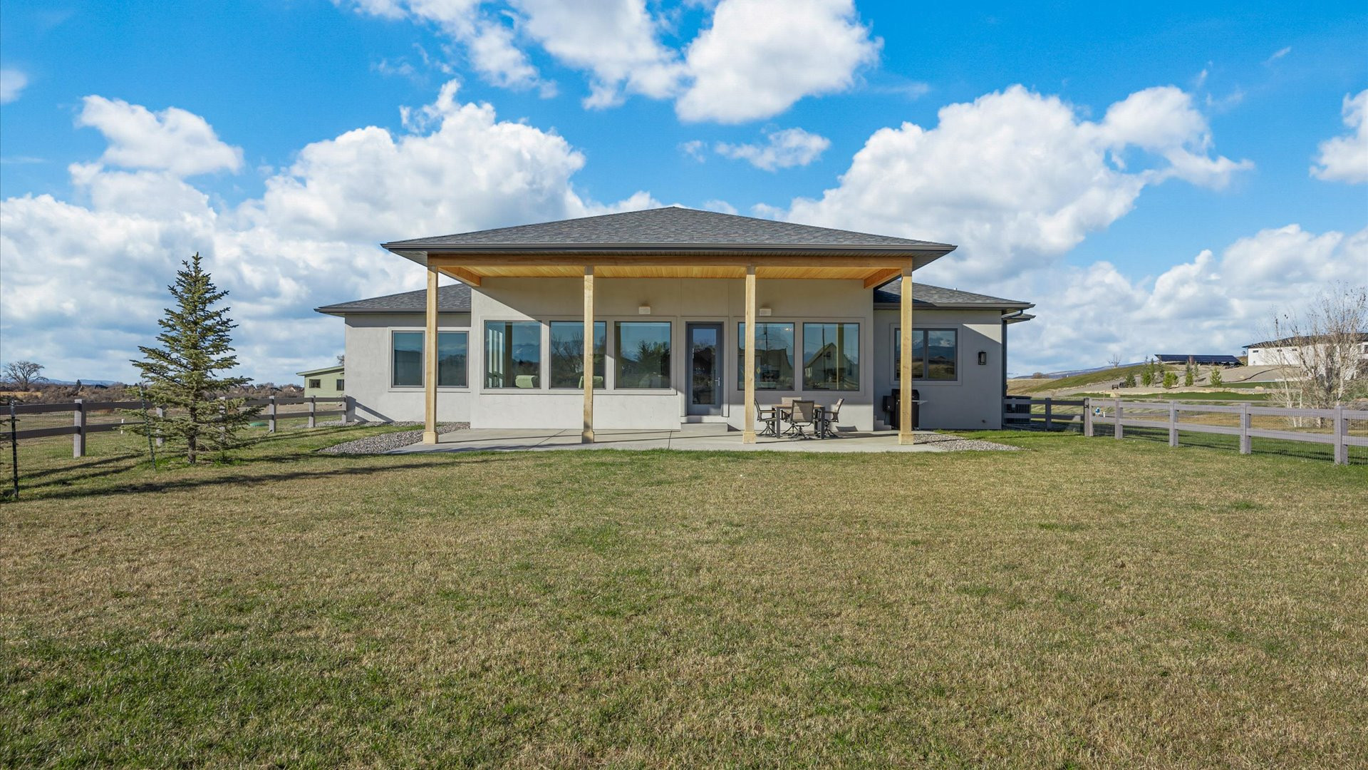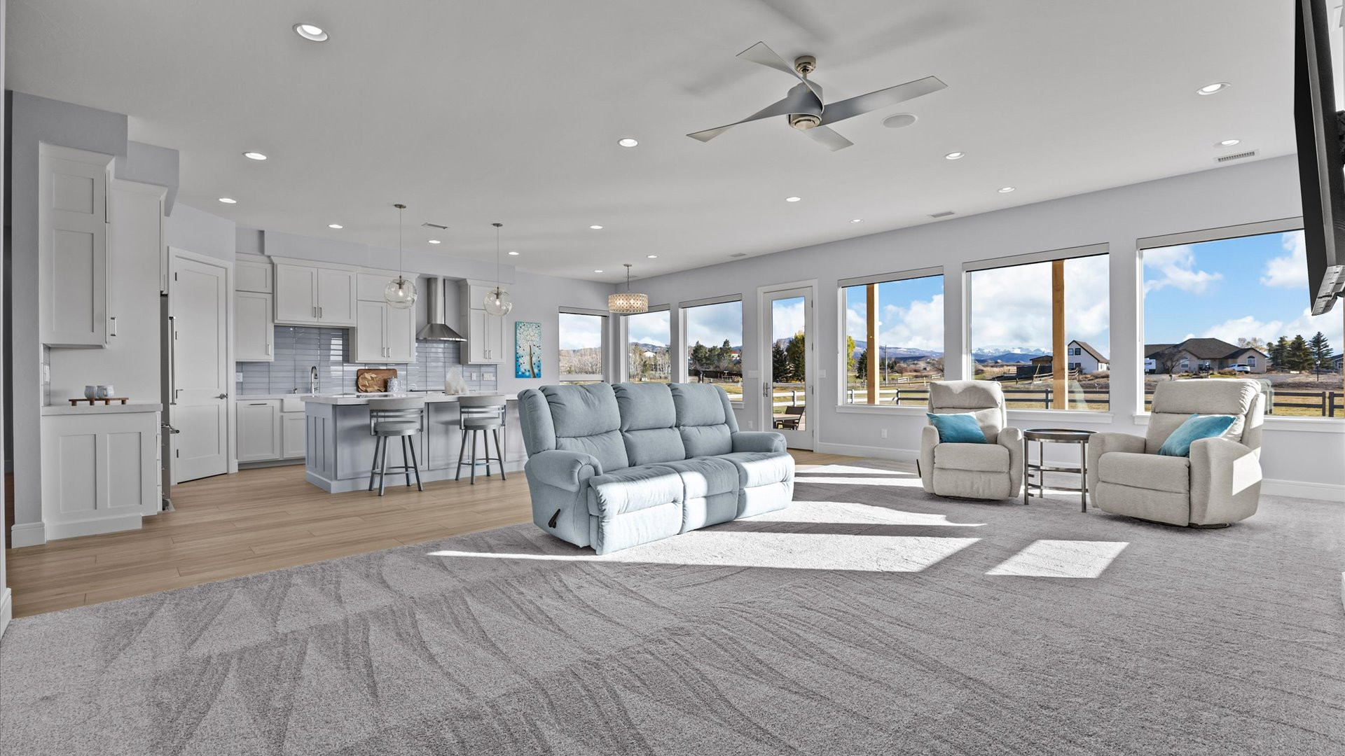 Majestic Mountain Views on 2+ Irrigated Acres! Show-Stopping, Search-Ending, New Construction Masterpiece. Unmatched Workmanship and Finishes inside the walls and out! An idyllic and tucked-away location in south Montrose, Colorado on rolling hills, surrounded by seasonal creeks and greenery. A completely customized thoughtfully upgraded home, one step inside transports you to a wonderland of natural light, meticulous detail, and conscious construction. Eight oversized Enerlux gallery windows unite the kitchen/living/dining spaces across the spanning south facing wall wrap providing 270 degree views capturing the absolutely epic San Juan and Cimarron Mountains, sunrises with the back drop of a magnificent oak tree and fiery red sunsets. The gourmet kitchen of your dreams awaits, providing ergonomic utility combined with beauty and indulgence. Hand-crafted, Amish Wood crisp white and sky blue cabinetry invites the sky and sunshine to expand throughout the kitchen. Designed with mostly drawers for easy access, a double thick, stunning quartz top with an on-trend glass subway tile backsplash that shimmers. Oversized spherical pendants enchant for entertaining at the expansive island that deserves its own sentence. Every detail planned to blend perfectly together and create a relaxing space for your loved ones (and you!) to take a deep breath and relax in your very own, everyday vacation! The smartly designed floor plan provides the perfect amount of space while optimizing views ensuring your living experience is something out of a dream. The en-suite is oversized and has a picturesque spot for meditation or a reading nook under the embracing sparkle of the translucent seashell chandelier. The elevating primary bath pops with a massive, west-facing window, the natural light bringing in a sense of pristine cleanliness. The spacious vanities, serene ergonomic soaking tub, and huge, tiled walk-in shower are complimented with a completely custom matching walk-in closet with waist height drawers and plenty of shelving. A well-planned retreat! Two oversized guest bedrooms each with walk-in closets. A small bonus room could be a home office, nursery or gym. The laundry/mud-room is refined with an elevated tiled clothes pre-rinse/dog wash station for ease when returning home from a fun adventure. Extra closets are cleverly tucked in throughout the home to provide an organized, clean space and reduce visible clutter. The garage accommodates larger vehicles, toys, and tinkering, with an 18’ door, extra depth and width, with heightened ceilings and windows. The oversized, extended covered and lit back patio is the perfect place to survey the landscape and experience what true peace and tranquility really mean. A home like this is hard enough to find on its own, much less when it’s on 2.3+ irrigated acres, tucked between two creeks and open space to make it feel even more expansive without the added maintenance. Enjoy countless upgrades, including a Warmboard, 4-zone radiant heat system with a 2-zone A/C system, Hellenbrand Whole House Promate Water conditioning system, Hunter Douglas mechanized blinds, over-excavated foundation with a full French drain setup and conditioned crawlspace, upgraded drywall and insulation, 10’ ceilings and so many more. The location is an absolute home run! The Falls at Valley Ranch is perfectly placed just minutes from all the best of what Montrose has to offer; a budding restaurant and brewery scene, unmatched healthcare, trails, open space and parks, boutique and traditional shopping, all without the headache and drama of what you get with urban living. And all of this with a jaw-dropping, dazzling home dripping in luxury! You’ve just found your refuge! Experience 3802 Aspen Grove for Yourself Today!