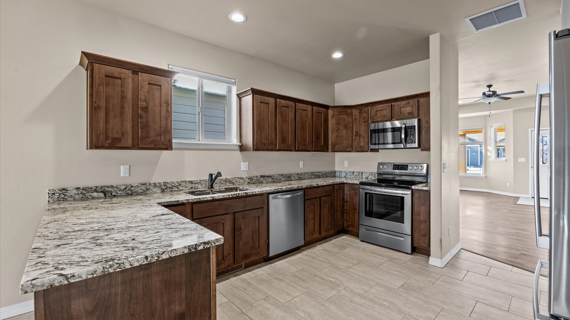 Immaculate Patio Home Offering with Beautiful Finishes, Ideal Floor Plan and Excellent Location! Come home to a life of no stress and enjoy convenience, easy living, and margin to enjoy everything that makes living in Western Colorado so good. Sharp curb appeal and complimented with a covered front porch, the perfect spot to enjoy morning coffee and soak up slow moments. This newer construction home offers quality craftsmanship, a strategic and thoughtful layout, and practical features throughout. Step inside to an oversized living room, streaming with additional windows and natural light, and enjoy a nook area, perfect for your favorite reading chair or yoga mat. The kitchen is equipped with stunning granite countertops and gorgeous stained wood, soft-close cabinetry. It also delivers stainless appliances, tons of counter space, and easy versatility with a large dining area and access to the backyard. The en-suite follows the same level of quality with on-trend tiled floors and an easy to use, walk-in shower. It also has a massive walk-in closet with all sorts of room to organize. Two spacious guest rooms provide flexibility for a home office, room for your loved ones, or whatever you need them for. An oversize, extra deep garage would accommodate most larger vehicles with ease. High-end Hunter Douglas Blinds throughout, a conditioned crawl space complete with a vapor barrier, the benefits go on, and this home is just waiting for you to come in and make it your own. Tucked on the southeast side of Montrose, you are minutes’ drive, even walk, from all sorts of quality amenities that make living in Montrose so easy. Unmatched healthcare and dentistry around the corner, a budding restaurant and brewery scene, walking paths, botanical gardens and parks, it’s all here right outside your front door. Ditch the Stress and Anxiety of a World Rife with Complexity, Noise and Drama, and Embrace Peace, Tranquility and Simplicity in This Pristine Patio Home in Western Colorado; It’s Waiting for You!