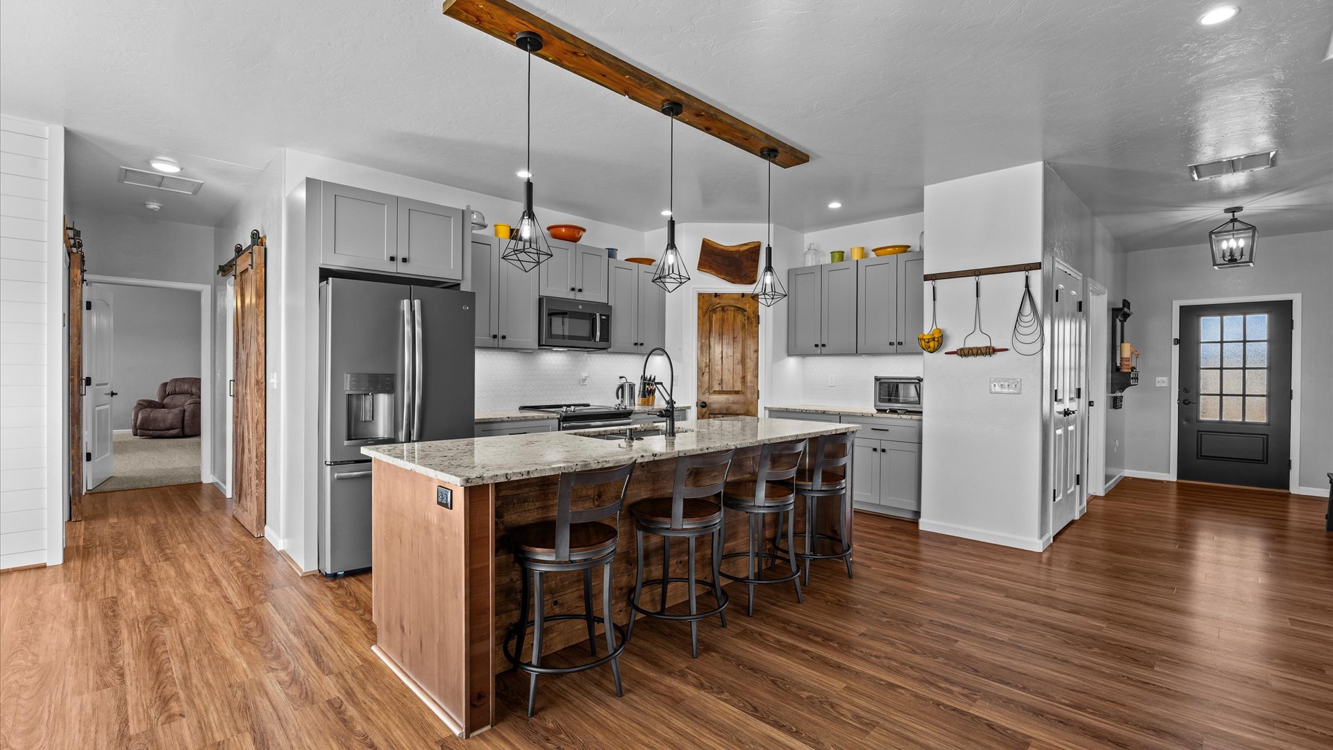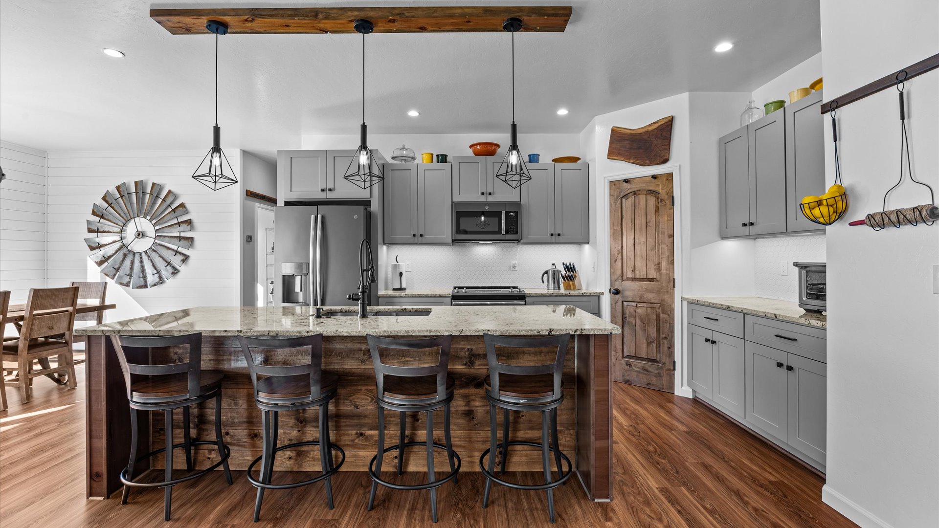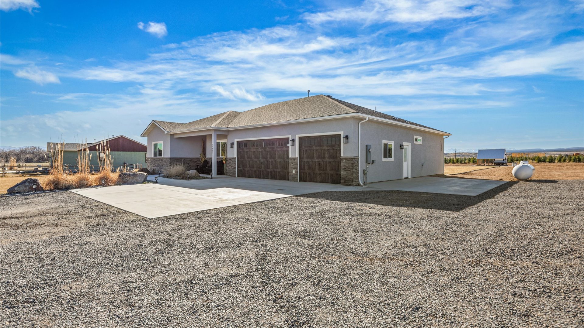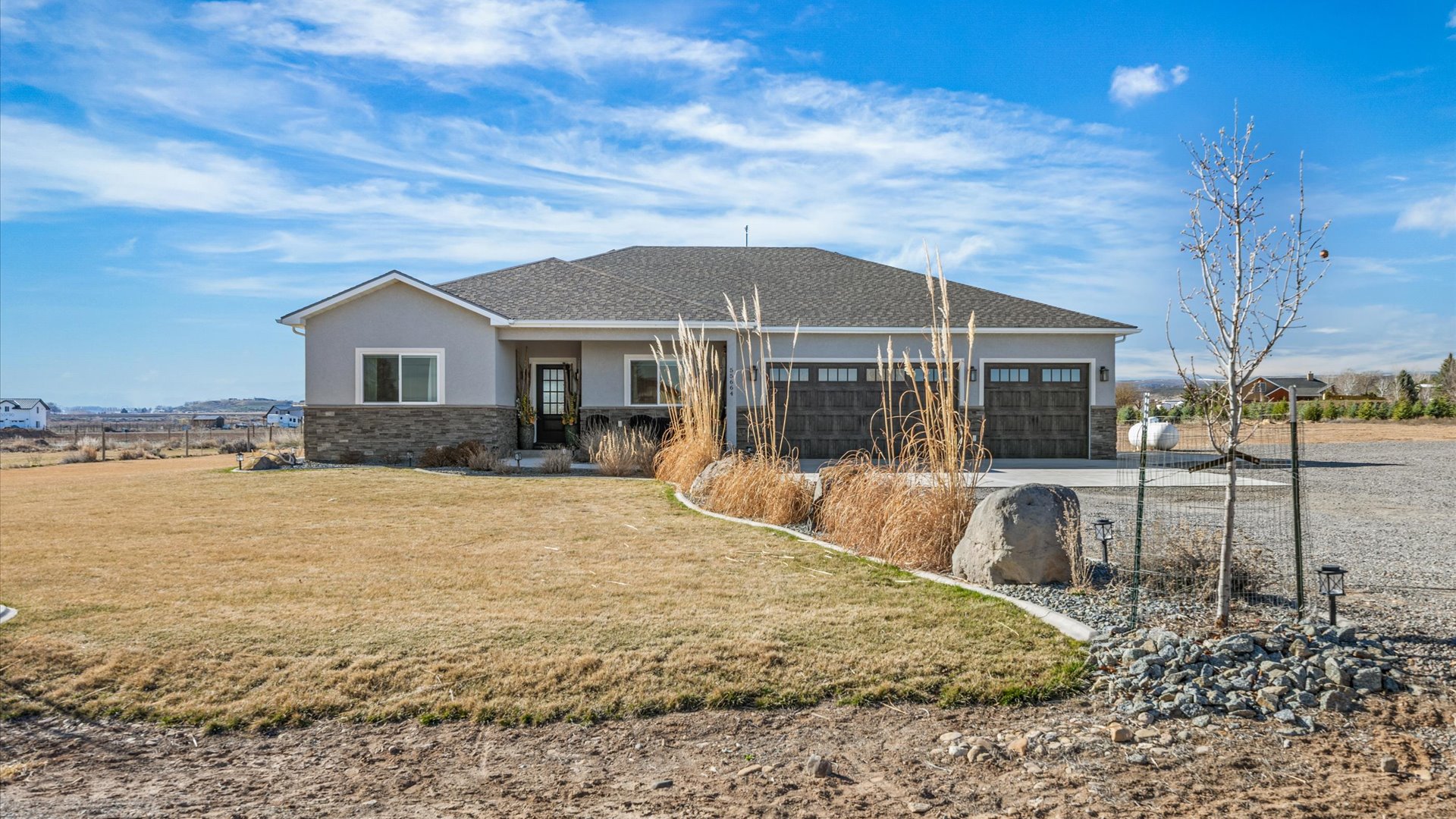 Dazzling Newer Construction Ranch Home on Over an Acre with Mesmerizing Mountain Views, Irrigation Water, Pristine Finishes and RV Parking! Make the dream a reality with the show-stopping property that delivers and embodies everything that makes living in Western Colorado so good. Step inside to a warm and inviting floor plan, with upgraded and on-trend fixtures, a perfect split and open floor plan, and plenty of functionality for whatever your life looks like. Your dream kitchen awaits and is tastefully appointed with two-tone, knotty alder and shaker-style cabinetry, complimented with under cabinet lighting, striking granite, a huge island, high ceilings, and a wonderfully ergonomic layout. Elevate the seemingly menial, simple moments of day-to-day life in a kitchen like this, all the while gazing to the south and surveying the soaring San Juan mountain range in the distance. Open living and dining areas make entertaining a breeze, complete with a beautiful stone fireplace, recess ceilings, and jaw-dropping views from every window. The en-suite is oversize and provides room for a reading nook, yoga mat or extra furniture, and the walk-in closet is massive. The en-suite bath is dialed in with a gorgeous, tiled walk-in shower with a seat and 2 shower heads, and is just waiting to calm your nerves and relax your senses. The guest bedrooms are spacious, and one is set-up to be a functional 2nd suite, which brings a whole level of versatility to this home. Enjoy a 4 flex-room, which could be an ideal play room, home office or workout space. Have an exceptionally busy and ‘full’ lifestyle? This laundry/mud room is the ideal spot to keep the mess out of sight with a sink, extra cabinetry and storage. A huge, extra-deep 3-car garage would accommodate large vehicles with ease and provides plenty of room for tinkering and projects. Step outside to your backyard and be transformed into another level of existence with spectacular mountain views, a lush and expansive yard with irrigation water, a tiled fireplace, covered back patio, and all the possibilities in the world. Have toys, RV’s, a boat or extra vehicles? Say hello to a massive side yard, tons of extra parking, property flexibility and a reasonable neighborhood allowing you to live the life you want without HOA Karen’s running around telling you what to do. This meticulously maintained and treasured property truly delivers it all. The Western Colorado Life You’ve Always Dreamed of is in Reach; Experience it For Yourself Today!