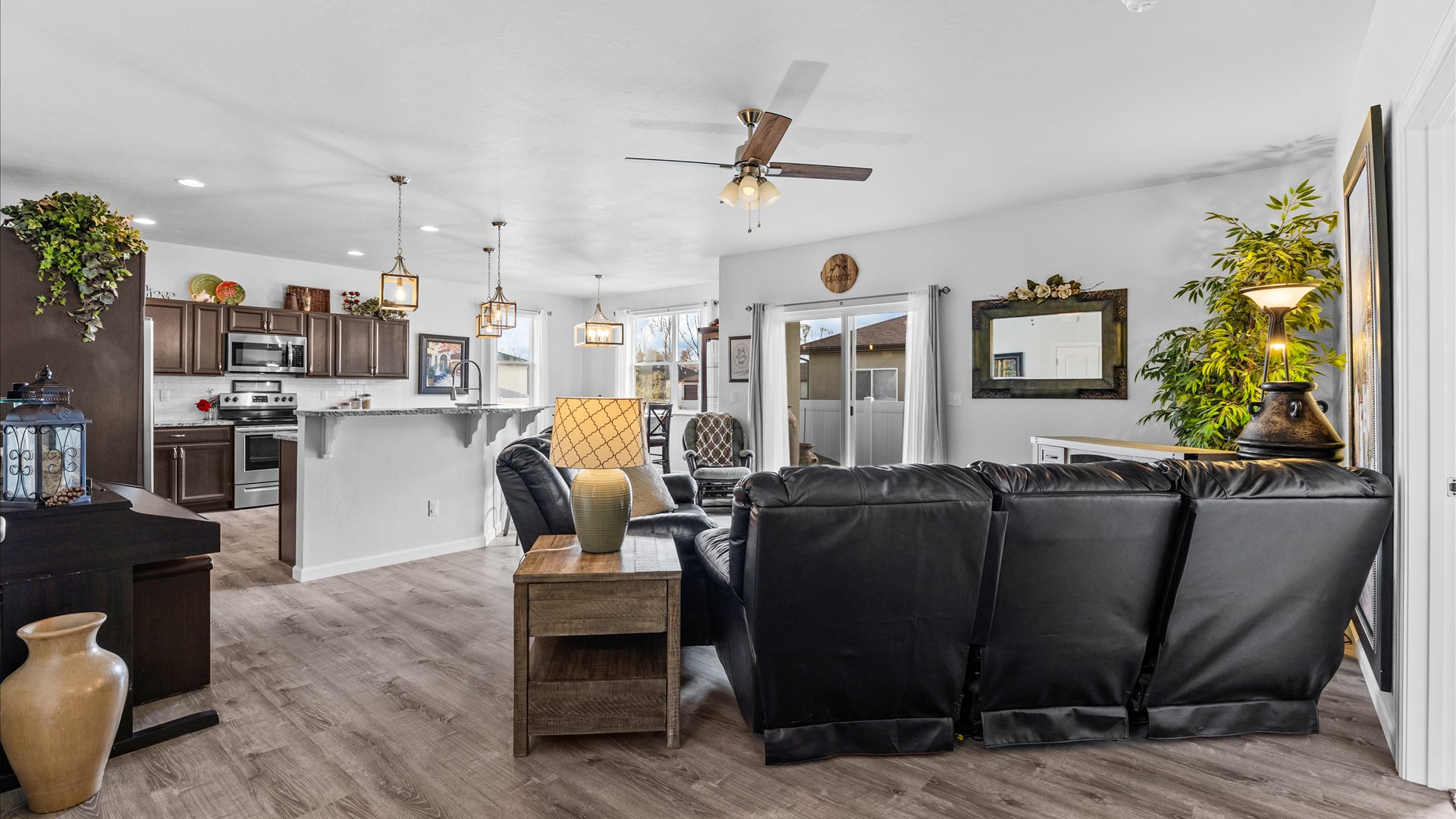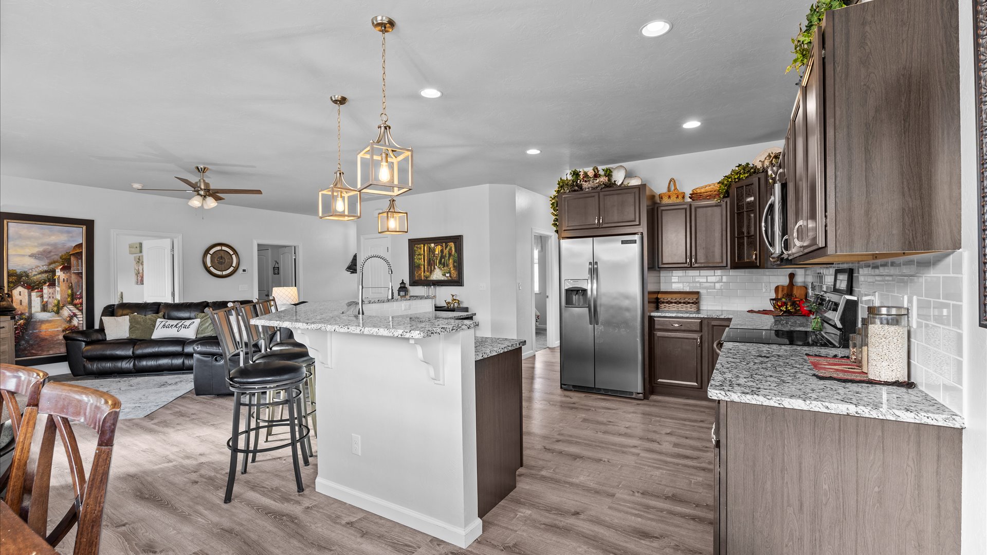 Dazzling Newer Construction Gem with Upgraded Finishes, Streaming Natural Light and Perfect Floor Plan! Everything you need and nothing you don’t, this home is equipped with fashion and function everywhere you look. Step inside to a strategically designed split floor plan, with an open concept kitchen/living/dining space, ideal for gatherings and entertaining your loved ones. Think you have to compromise in the kitchen in this price range? Think again. Upgraded, soft-close cabinet package, a convenient pantry, a beautiful granite and tiled backsplash combination, on-trend lighting with dimmers, and an ergonomic layout. The primary bedroom doesn’t cut corners either with dazzling tile, a massive walk-in closet, and an elevated double vanity. The guest bathroom delivers quality finishes as well, and the two guest bedrooms allow privacy and flexibility. Enjoy convenience with a dedicated laundry room with counter space and room to keep the mess out of sight. The garage is dialed in with immaculate, epoxied floors, 220V power, and is the perfect place for tinkering, extra gear, and additional storage. The backyard delivers even more desirable features with a finished, insulated and powered, 10′ by 12′ shed that could be the perfect spot for a home gym. It also has an extended, covered patio, a quality setup for gardening and growing your own fruits/vegetables, and gated side parking for additional toys. Next-level amenities like a Wi-Fi-controlled sprinkler system and simply too many upgrades to list. Peace of Mind and a High Quality of Life are Delivered in This Move-In Ready and Fabulous Offering; Discerning Buyers Won’t Wait!