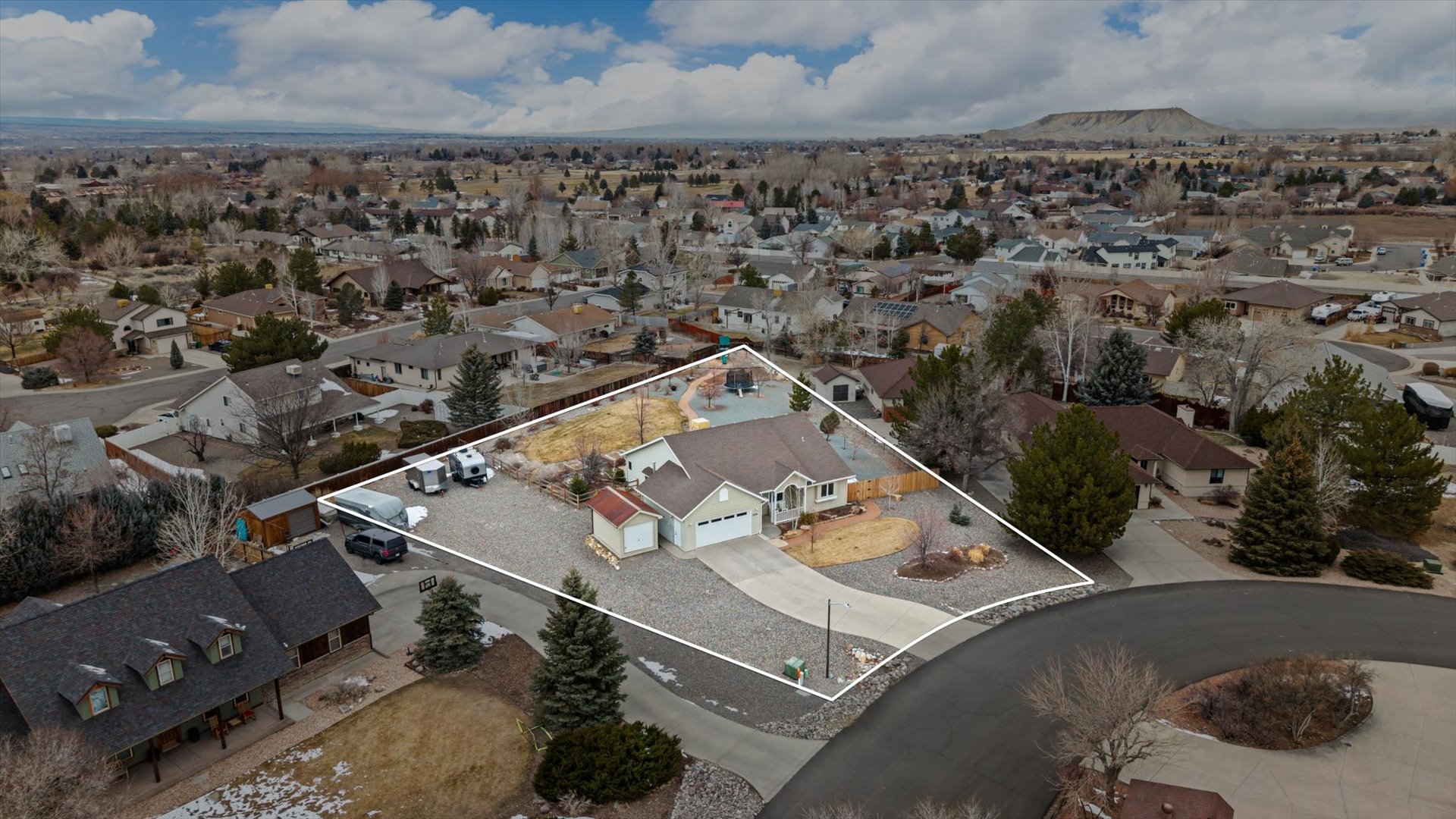 Quality, Versatile Home Meets No HOA and RV Parking on a Huge Lot in Southeastern Montrose for Under $600k! Yes, you read that sentence correctly. A rare anomaly, this home embodies value, functionality, and provides that high quality of life you’ve been looking for. Step inside to a welcoming, warm floor plan, with high ceilings, an ergonomic layout, and plenty of room for whoever you’re bringing with you. The kitchen is equipped with an island and an eat-in bar, 2 large pantries for extra storage, a large bay window providing excellent natural light, and abundant cabinet storage and counter space. The en-suite has a large walk-in closet, a relaxing jetted soaking tub and walk-in shower, as well as additional space for furniture, a reading nook or yoga mat. Step outside to the backyard, or better put, haven of relaxation, amenity and happiness; have it all with a nearly 3/4 acre lot, complete with garden boxes, lush landscaping accented with pine trees and elevated views of the Uncompahgre Plateau. Make the backyard the ultimate adventure zone for the little explorers in your life, or just enjoy the freedom, flexibility and privacy that comes with this next-level setup. An extended flagstone patio with a pergola is the perfect spot to sit down and enjoy your favorite beverage, and a large 12′ by 16′ storage shed provides room to tinker and store projects. Surrounded by gorgeous homes, enjoy the perks and benefits of being in a supreme location within Montrose, without the headache and brain damage of HOA Karen’s telling you what to do and bleeding you dry. Kiss postage stamp, new construction homes with no personality or amenity goodbye and embrace a life of freedom, joy and independence. Make the Dream a Reality and Take a Tour Today!